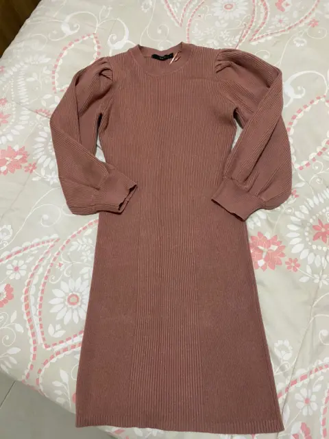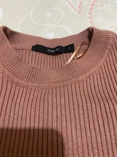 Vestido de tejido canalé, color palo de rosa, talla L, marca Bobois.