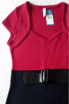 vestido de tejido de punto. vestido de tejido de punto textura suave y calientita, tejido grueso, colo rojo con negro, llega arriba de la rodilla