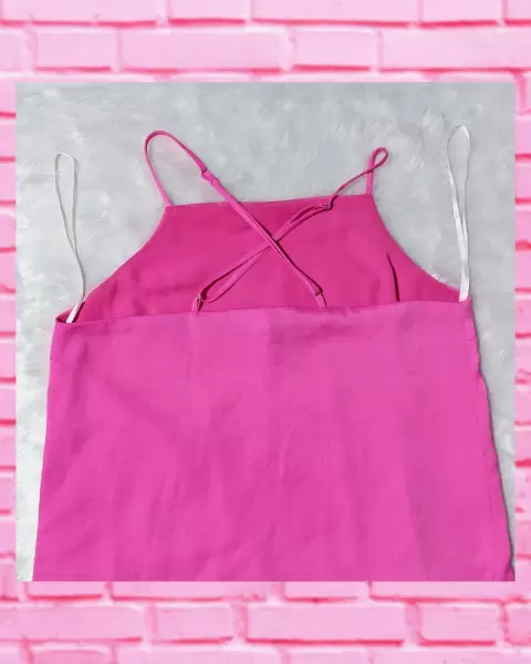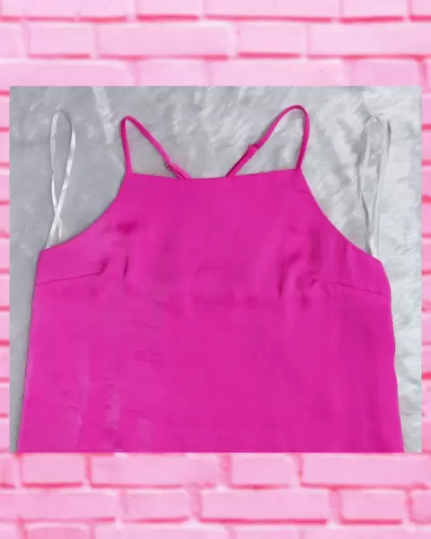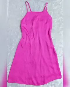 Vestido de tela tipo satén rosa semi ajustado. Es un vestido que puede entrar en la categoría de los básicos, pues se presta para muchas combinaciones, pues solo se deben incluir los accesorios indicados para transformar el look, por ejemplo, para el día opta por collares mucho más sencillos, pero por la noche llévalos con unos más llamativos o incluso puedes agregar un cinturón para marcar tu cintura y darle un toque más sensual...