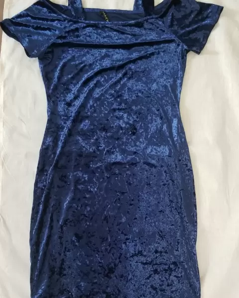 Hermoso vestido de terciopelo. Esta nuevo. Llega justo arriba de la rodilla. De hombros descubiertos