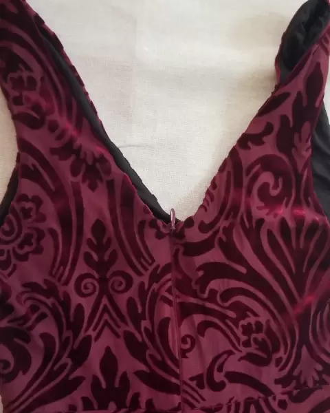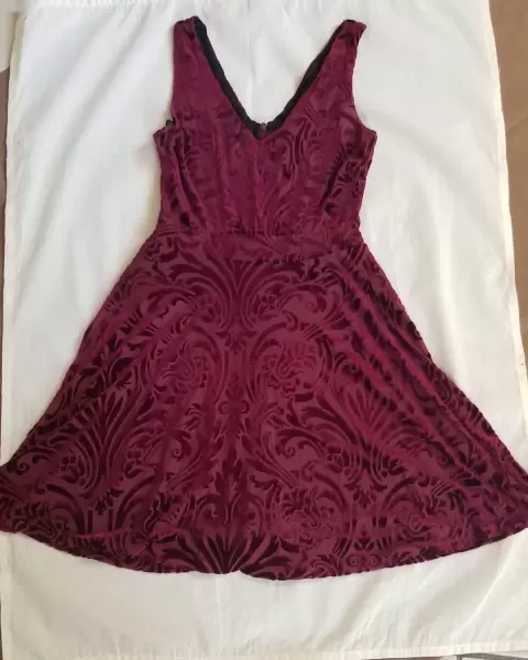 Vestido de terciopelo vino. Lindo vestido corto. Las grecas estan hechas con terciopelo. El fondo es de licra
