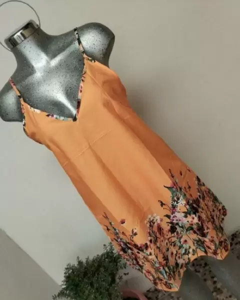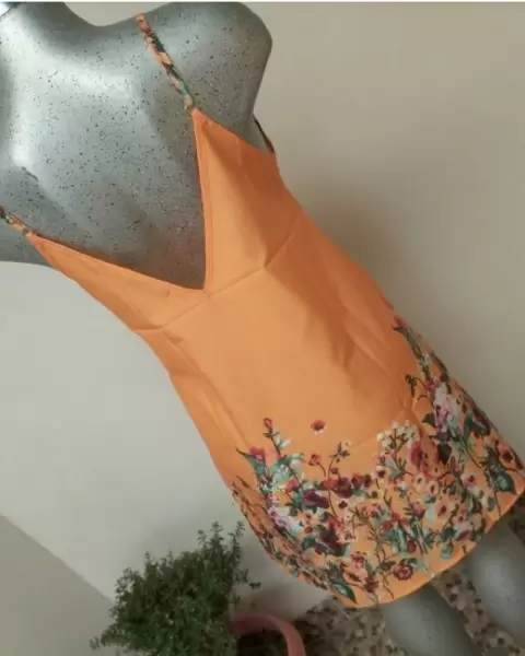 Vestido de tirantes. Vestido de tirantes cuello v estampado en flores en la parte de abajo