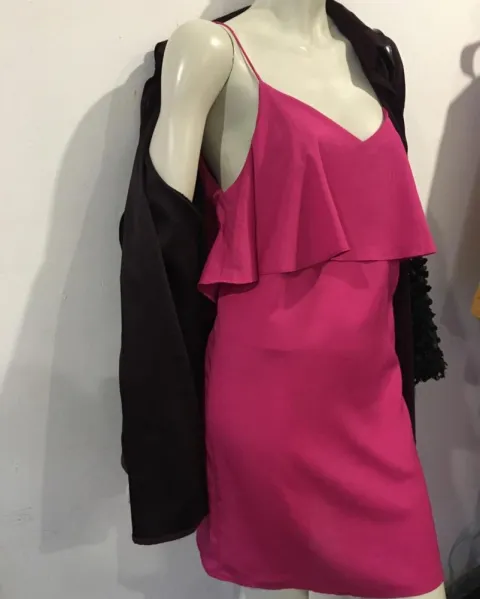Vestido de tirantes color rosa. Hermoso vestido de tirantes color rosa talla CH nuevo con etiqueta