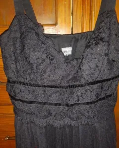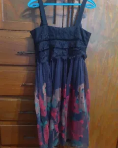 Vestido de tirantes con encaje. Bonito vestido, con encaje en la parte superior, en buenas condiciones talla 8 americana. Presenta las siguientes medidas 45 cm de axila a axila 94 cm de largo. Con zipper lateral