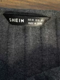 Vestido de tirantes shein. Gris Oxford, cortito y pegadito, tela tipo canale un poco ancha, tirantes tipo espagueti