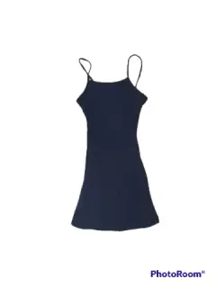 Gris Oxford, cortito y pegadito, tela tipo canale un poco ancha, tirantes tipo espagueti