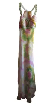 Vestido de tull de flores. Cuenta con piedras bordadas, con shaquira y canutillo. De Tul con flores en talla 10 americana.40 cm de cinturaDe cintura hacia abajo son 165 cm de largo