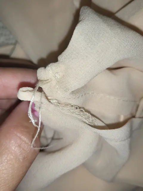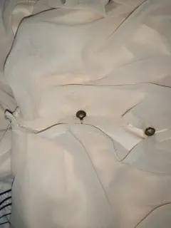 Hermoso Vestido corto, color crema, tela delgada con forro, botones discretos de un lado