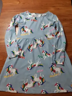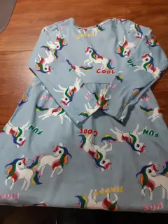 Vestido de unicornios azul. Vestido de niña de algodón con grabados de unicornios en tono azul cielo.