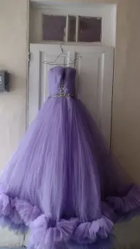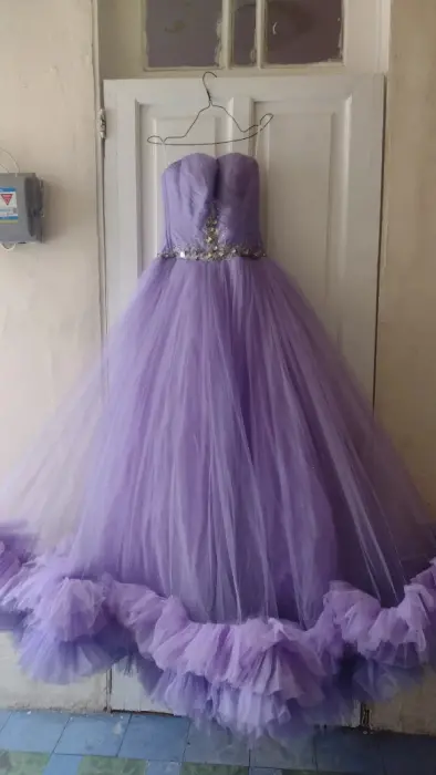 Vestido de 15 años color lila solo faltaría mandarlo a la tintorería es para una niña entre 1,45 y 1,55 de altura tiene una ligera rasgadura que ya se coció