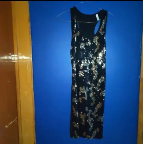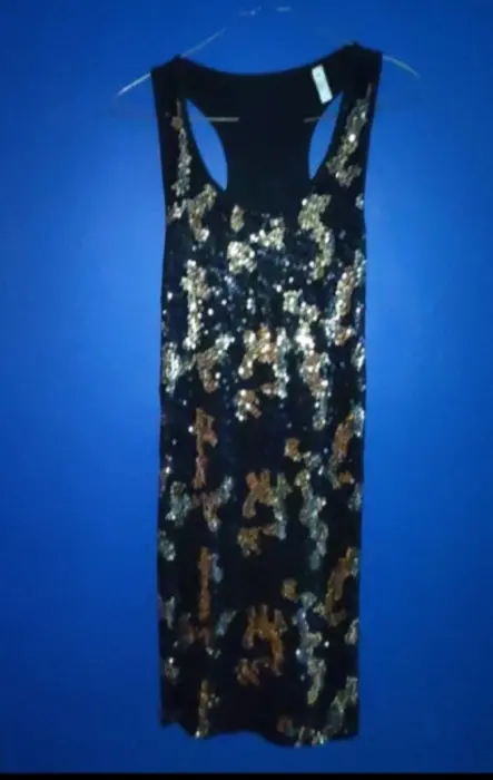 Vestido detalles dorados. Vestido ideal para salir de antro. Tella ligera para a bailar. Detalles que te haran brillar.