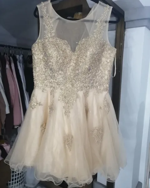 Vestido dorado con pedrería, hermoso, nuevo sin etiqueta talla 3xl