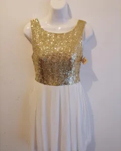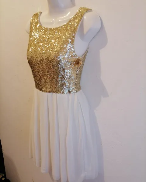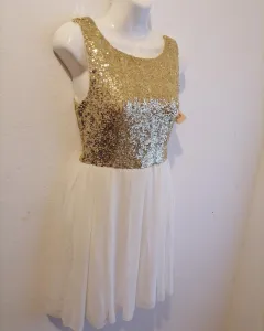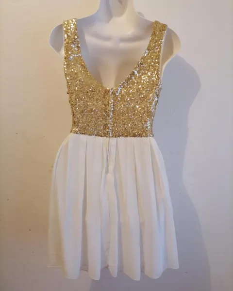 Vestido dorado con blanco. Hermoso vestido de fiesta BDarlinLentejuelas dorada y blanco talla 5/6 es nuevo