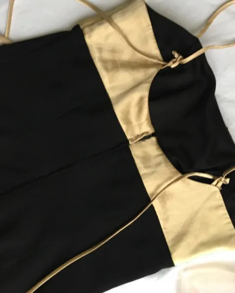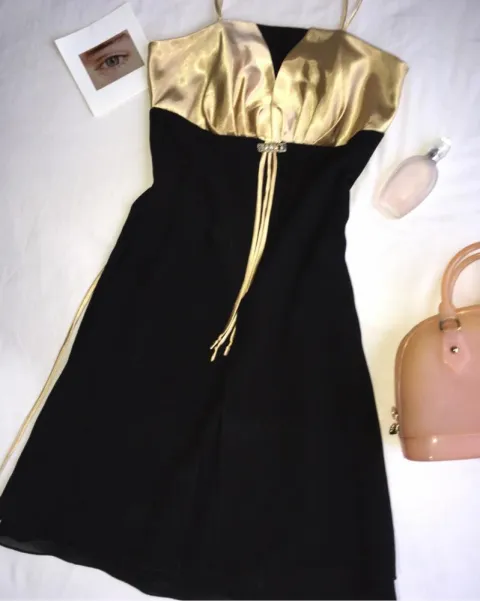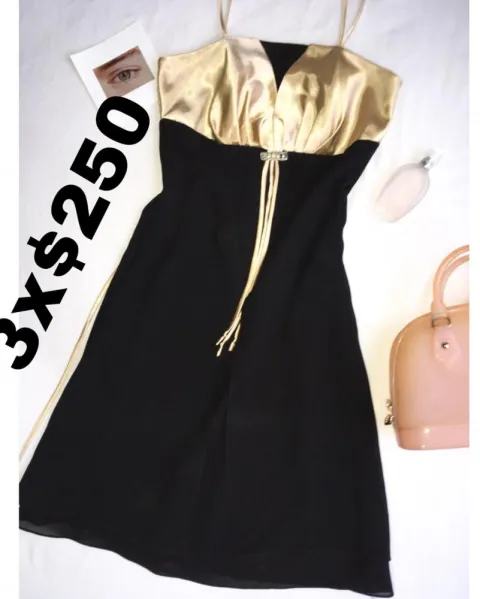 Vestido dorado con negro 3x1. Elige 3 prendas de mi closet y paga solo $250, leer la promo al final de las fotos!! Todo es negociable si te interesan mas prendas ☺️
