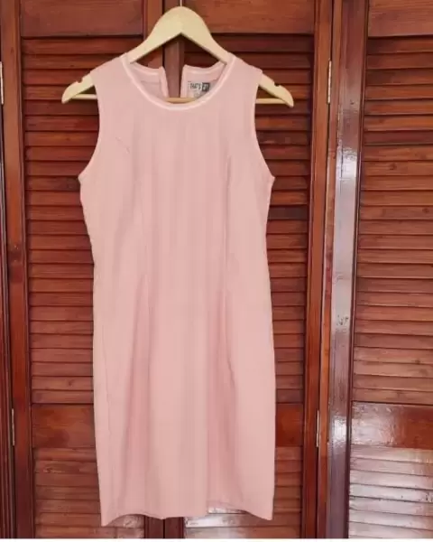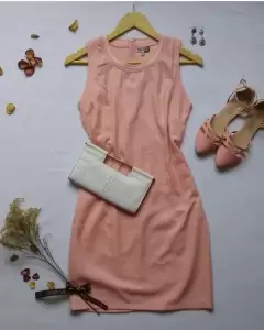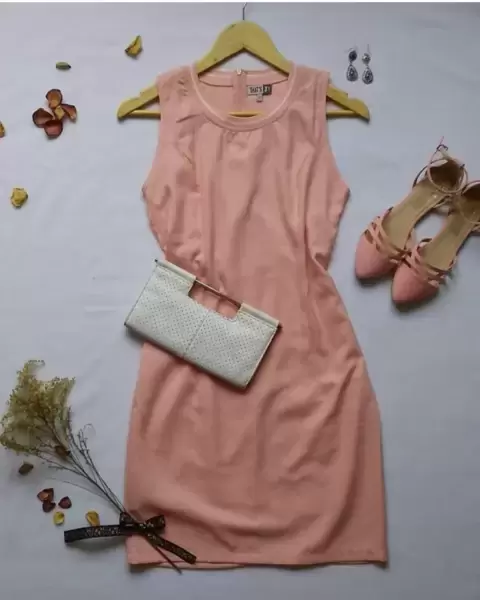 Vestido durazno. Bonito vestido color durazno con detalle en cuello en blanco estilo deportivo