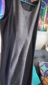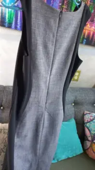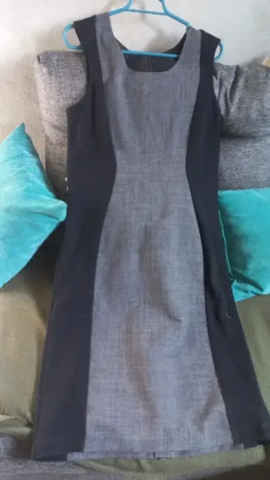 Vestido recto, muy bonito, gris con negro, sin detalle, fresco, solo se uso un par de veces