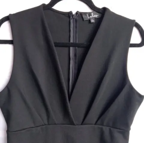 Vestido elegante ajustado LULUS. Vestido ajustado elegante LULUS, escote en V, con pliegues irregulares y silueta que se ajusta al cuerpo, cierre oculto en la parte traseraTalla LMedidas tomadas por un solo lado:*Axila-Axila 45 cm*Cintura 39 cm*Largo 85 cm⚜️ Por favor 🙏, si vas a ofertar, sea solo porque tú compra es segura ⚜️