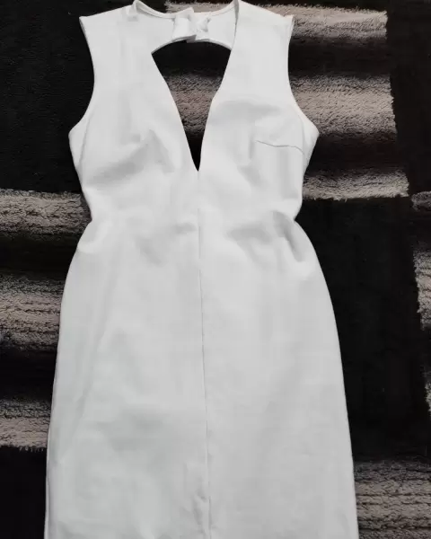 Hermoso vestido blanco escote en v por la parte del frente y escote en espalda acentúa la cintura, muy cómodo con forro en falda, talla CH tela strech ajustable.🥰😘😍😍