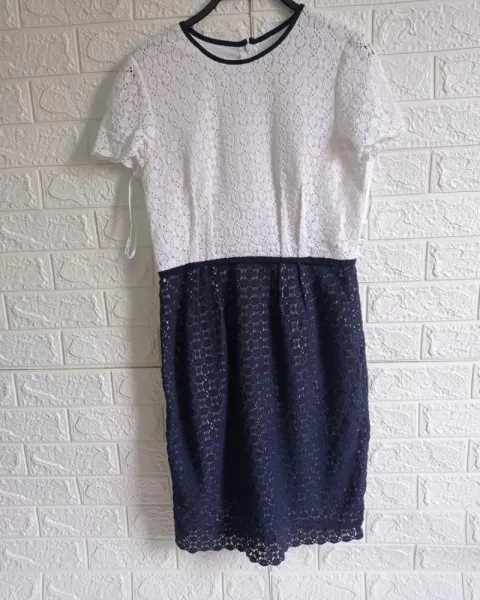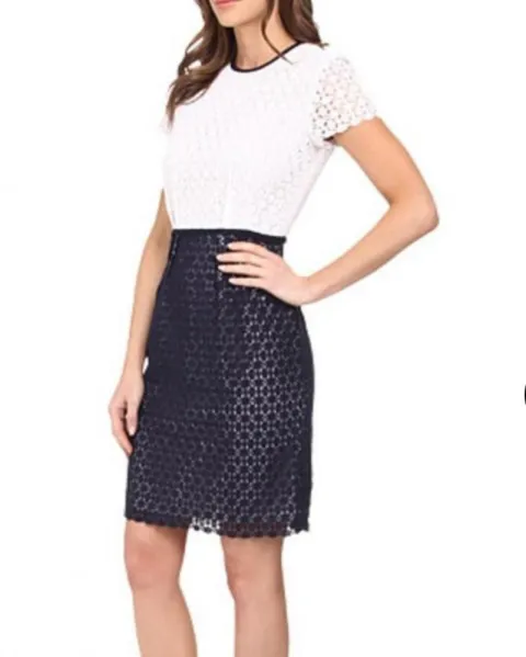 Vestido elegante Calvin Klein azul con blanco. Talla 4♥️Envios lunes miércoles y viernes ♥️Quedó al pendiente para resolver cualquier duda. ♥️Si me has comprado anteriormente avísame para enviarte regalito extra.