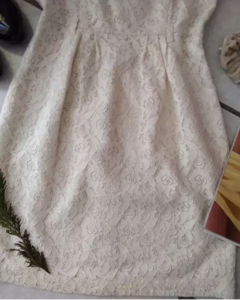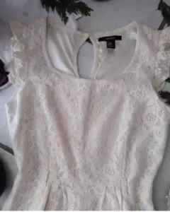 Vestido hermoso y elegante con encaje, para lucir en cualquier ocasión, no tiene strech, horma lindo, tiene forro dorado interno lo cual hace que luzca con destellos. Mide de axila a axila: 43 cm, Largo: 82 cm.