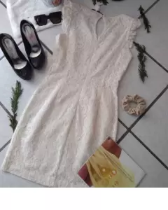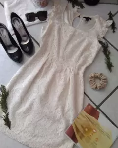 Vestido elegante encaje. Vestido hermoso y elegante con encaje, para lucir en cualquier ocasión, no tiene strech, horma lindo, tiene forro dorado interno lo cual hace que luzca con destellos. Mide de axila a axila: 43 cm, Largo: 82 cm.
