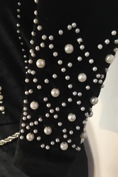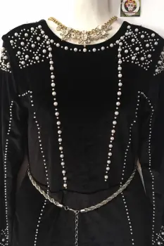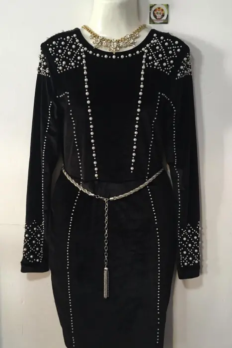Vestido Elegante H&M Perlas. H&M VESTIDO DE TERCIOPELO PERLAVESTIDO DE TERCIOPELO PERLA H&M, ESCOTE A LA ESPALDA, FALTAN ALGUNAS PERLITAS, TIENE ETIQUETA, talla 6 americana Talla S, CINTURA 36 CM, CADERA 44 CM, AXILA A AXILA 42 CM Y LARGO 90 CM ANIMATE!