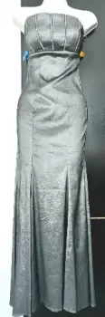 Vestido elegante plateado. Vestido largo elegante color plata strapless con escote en la espalda, corte favorecedor en la cintura. Detalles brillantes al frente que resaltan y lucen muy lindos.