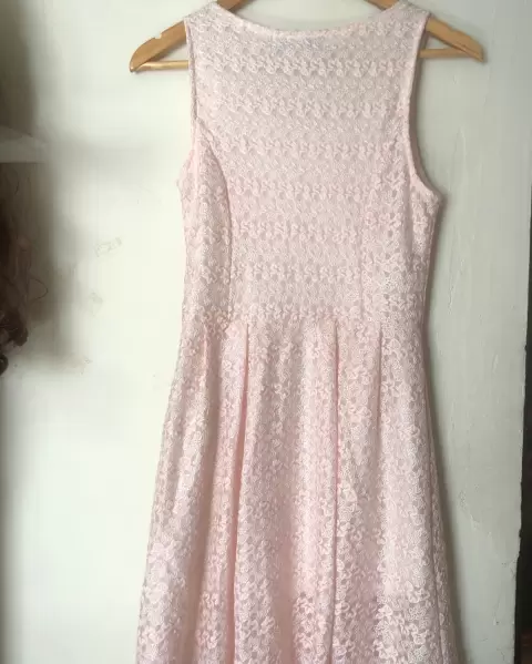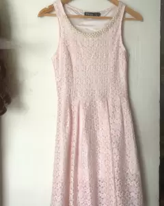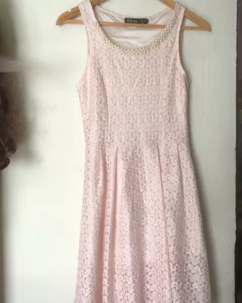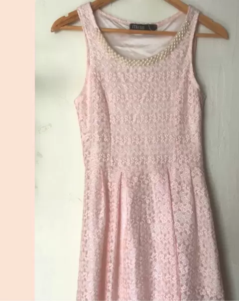 Vestido elegante rosa. Vestido elegante rosa con detalle de collar perlas