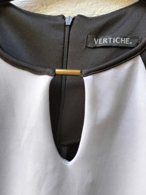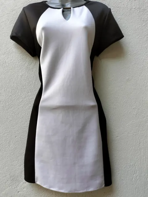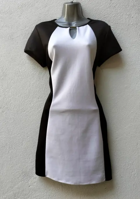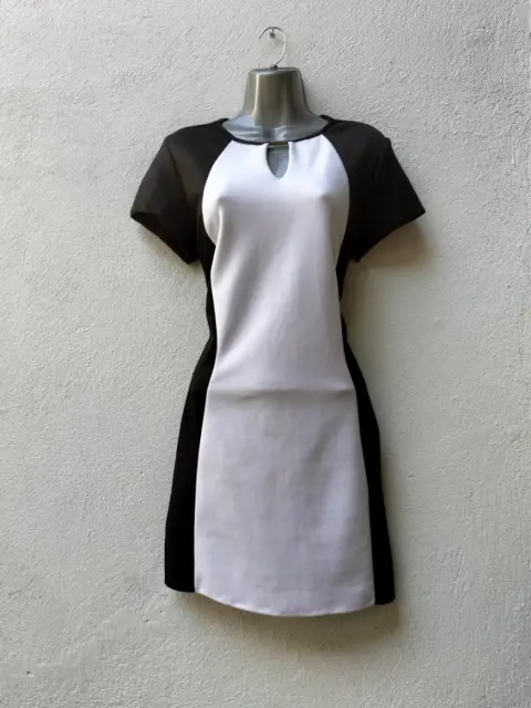 Vestido elegante vicolor recto. Hermoso vestido elegante vicolor recto corto, negro con franja blanca al frente , cuello redondo manga corta