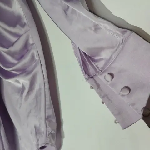 Vestido elegante y color morado lila 🟣. Tela suave de seda ❌No caliente ✔️fresca