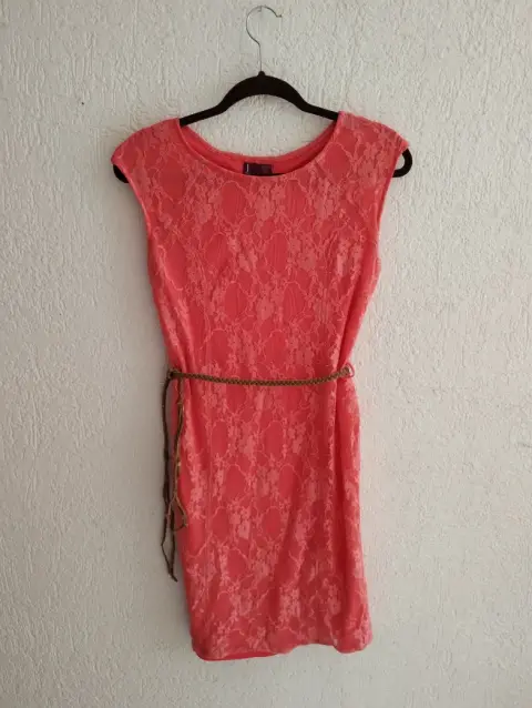 Vestido en color salmón. Hermoso vestido en color salmón, el cinturón no se encuentra en buenas condiciones. Medidas: 92cm de largo y 45cm de axila a axila