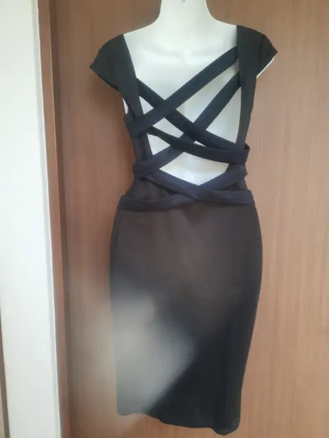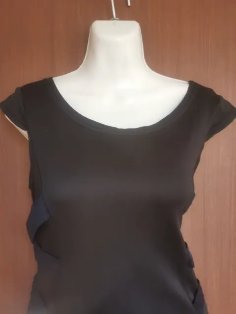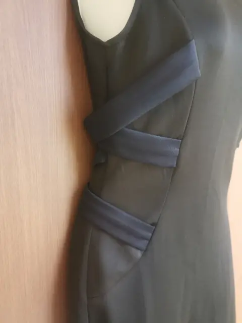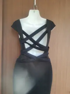 Vestido entallado negro con tiras azul marino amolda muy bonito al cuerpo no recuerdo la marca