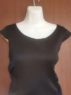 Vestido entallado. Vestido entallado negro con tiras azul marino amolda muy bonito al cuerpo no recuerdo la marca