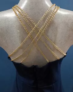 Vestido entallado Liz Minelli. Vestido con abertura en la pierna y cadenitas como tirantes, viene un poco reducido, para una CH/M. Tiene los detallitos anexados pero con una puntada quedan por que son superficiales. Cuenta con cierre escondido