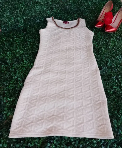 Vestido blanco, tela gruesa, de la marca Líneas.Queda a XS o S