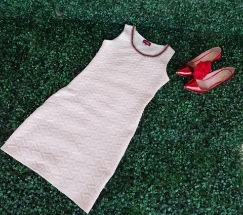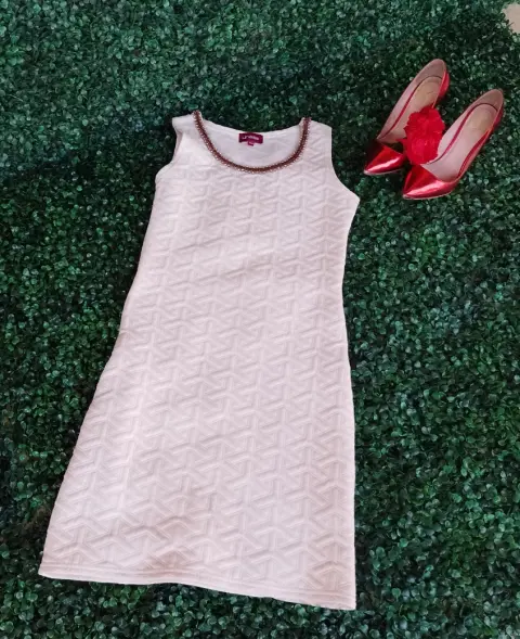 Vestido entallado middi. Vestido blanco, tela gruesa, de la marca Líneas.Queda a XS o S