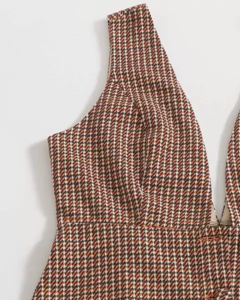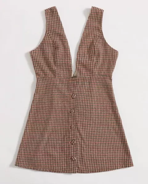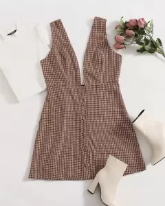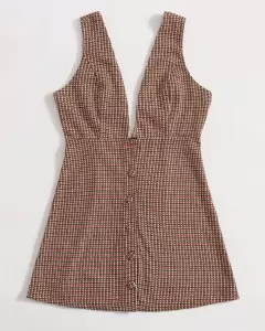 Vestido escoses en V, de botones. Vestido tipo jumper. Viene con forro. La tela es súper suave al tacto
