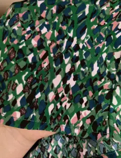 VESTIDO ESCOTE V. Vestido escote cruzado, con elástico en la cintura manga tipo mariposa