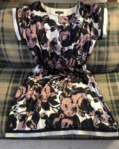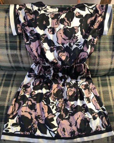 Vestido casual, en perfecto estado y es de excelente calidad, tela de seda, tiene fondo y resorte que ajusta a la cintura.