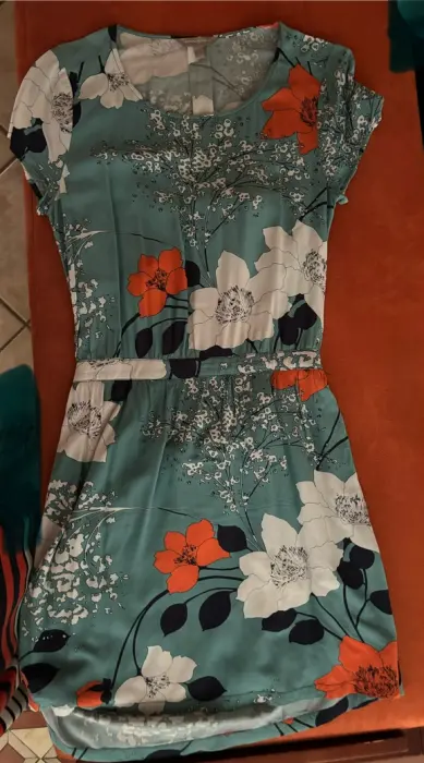 Vestido estampado. Vestido coqueto con Cintura y espalda destapada, fresco y cómodo, manga corta