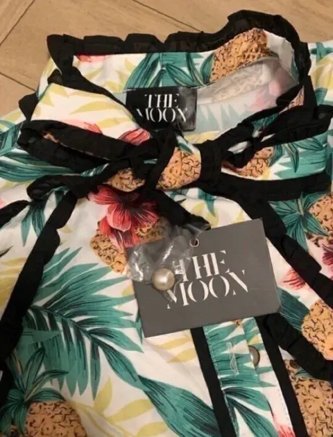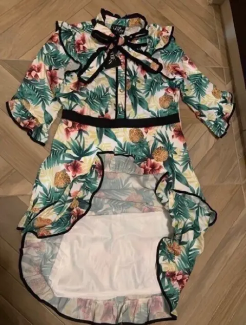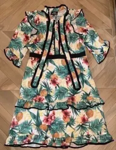Vestido con estampado tropical Con olanes Botones en la parte superior Llega por debajo de la rodilla a la mitad de la pierna Cierre al costado Forro Botón de repuesto Nuevo Marca The Moon