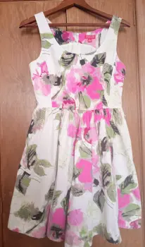 Vestido estampado en flores. Hermoso, fresco y cómodo vestido veraniego, de algodón, cuenta con forro en la parte de arriba, no se trasparenta , tiene bolsas discretas a los laterales y cierre invisible, se ve muy bonito puesto, para cualquier día de verano, porque cada día es una ocasión especial.