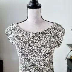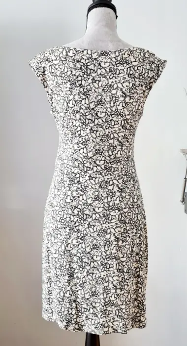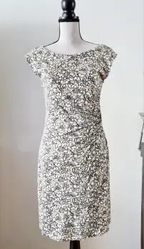 Vestido estampado Loft. Vestido en color beige estampado en negro, la tela es de buena calidad, no transparenta, estira un poco y cuenta con fondo, en la parte de enfrente tiene un fruncido que acentúa la cintura.MedidasBusto 47 cmCintura 41 cmLargo 87 cmArmo paquetes y te ofrezco mejor precio 📦 😊 ⭐️