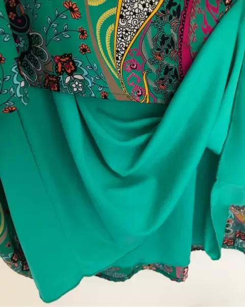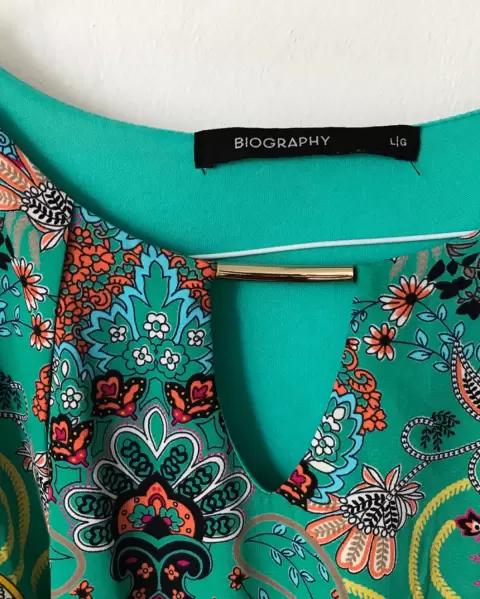 Hermoso vestido, para usar casual o formal, estampado súper lindo y con detalle en cuello, llega arriba de la rodilla, es súper cómodo ya que no queda ajustado, trae forro, sin detalles de uso, en perfecto estado 👌🏻
