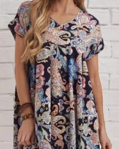 Vestido estilo boho, es fresco y queda a las rodilla, puede ser usado para embarazo o en cualquier ocasión.