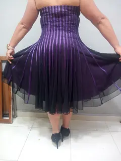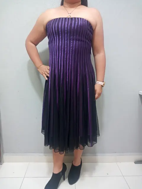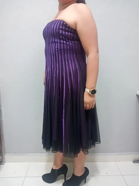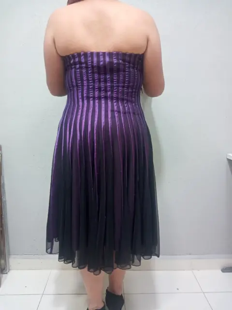 Vestido estraple. Vestido estraple talla chica, da hasta talla mediana, color morado con negro, da forma, en buen estado de uso