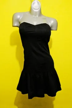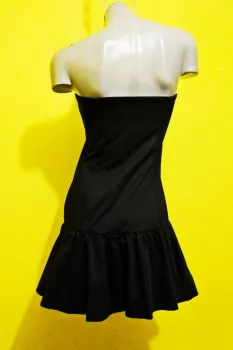 COLOR NEGRO, STRAPLESS, STRETCH 1% SPANDEX, 99% ALGODON, CIERRE A UN COSTADO, TALLA CHICA 6 EQUIVALE A UNA TALLA 28, MEDIDAS DE UNA CARA: AXILA A AXILA 36 CM (ESTIRA HASTA LOS 44 CM), CINTURA 38 CM (ESTIRA HASTA LOS 41 CM), CADERA 48 CM (ESTIRA HASTA LOS 52 CM), LARGO 68 CM.