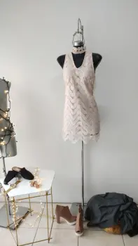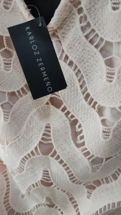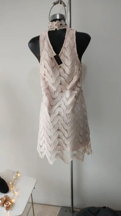 Vestido de coctelNuevoCon etiquetaColor SALMÓNParecido a encajeCon botones en cuello traseroEn cuello VCortóArriba de la rodilla