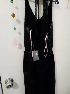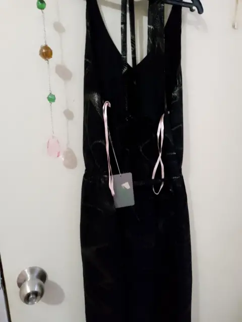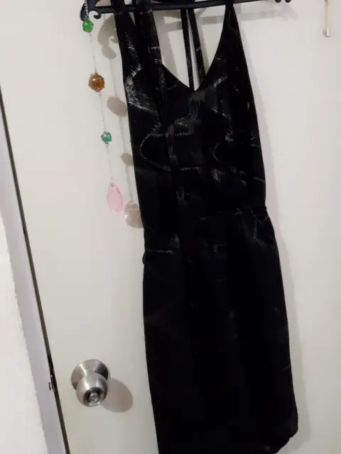 Vestido corto de fiesta, negro con plateado, nuevo con etiqueta, talla mediana.