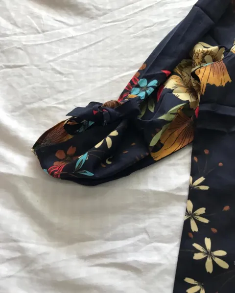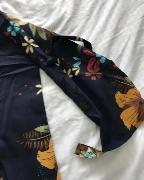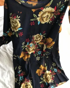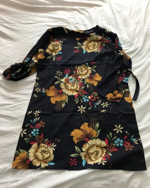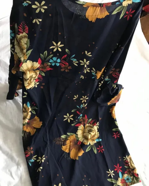 Vestido floral. Vestido con flores en color azul marino, talla XL da también para una talla L. En perfecto estado se uso una ocasión las mangas se usan de dos tipos largas o 3/4